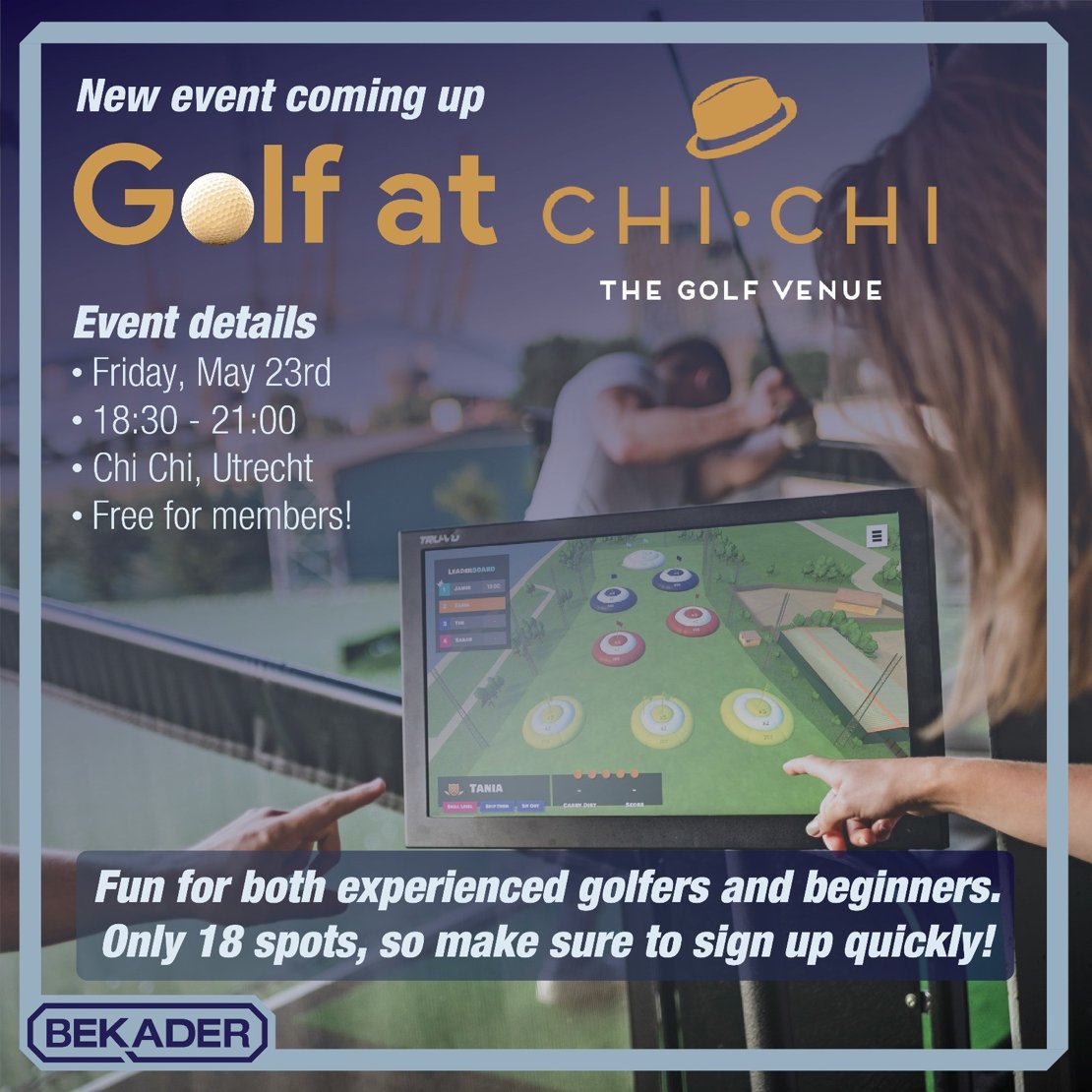 Bekader would like to invite all Business Administration and Industrial Engineering Management alumni to an evening of fun, golf, and networking at Chi Chi Golf in Utrecht! A great opportunity to reconnect with fellow alumni, enjoy some golf, and unwind with drinks in a relaxed setting.