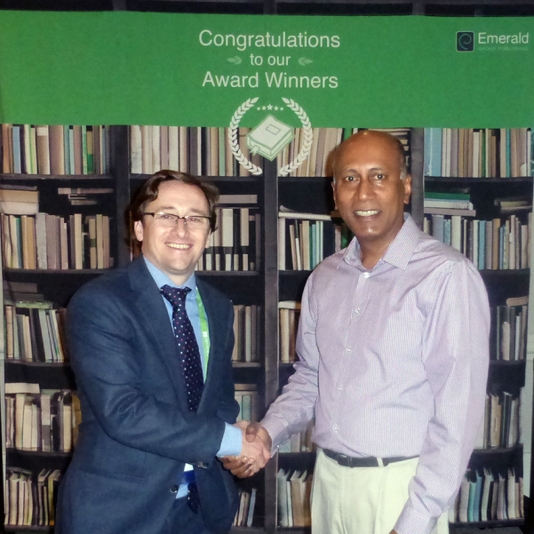Emerald Group Publishing has given this award for his paper (co-authored with Rejie George of Indian Institute of Management, Bangalore): “Heterogeneity in business groups and the corporate diversification - firm performance relationship”, published in the Journal of Business Research (vol. 65, pp. 412-420, 2012).