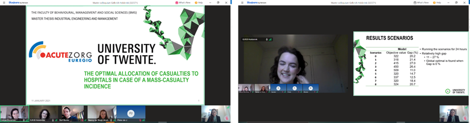 Gelbrich Holsbrink successfully defended her thesis with the title “The optimal allocation of casualties to hospitals in case of a mass-casualty incidence” and with that obtained her master’s degree in Industrial Engineering & Management (IEM) under the supervision of Dr. Derya Demirtas and Dr. Patricia Rogetzer.