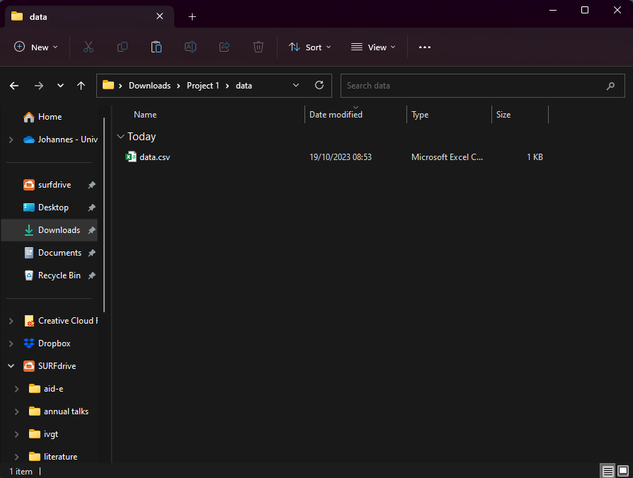 However, this easy-to-use approach can become an issue when dealing with large amount of files, when you are collaborating with other people, or when you need to know where your files are stored. Imagine you are writing your Bachelor or Master thesis: In order to not lose track of your data and report drafts, it is useful to create a folder structure that allows you to easily find all files, without having to use a search function.