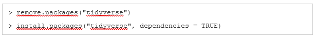 3) Try to load the tidyverse package now. If similar error appears with different package name make sure to adjust and re-do step 2. If the error still persist with the same library you may want to remove tidyverse package and re-install it: