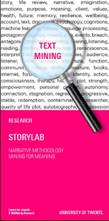 Our main aims are to foster understanding of stories in a changing world, to innovate storyline analyses, and to design narrative interventions that promote community, well-being, and mental health. We work together across a broad range of disciplines from arts and humanities to behavioral and social sciences to computer sciences. We have a strong collaboration with the professional field, like mental health institutes, hospitals, care organizations, social work, and education.