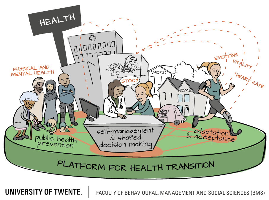In a world facing the complex challenges of rising healthcare costs and an aging population, our research theme at the Faculty of Behavioural, Management and Social Sciences (BMS) explores how to create a future-proof healthcare system. We move beyond traditional treatment to empower individuals and society to improve their health and well-being.