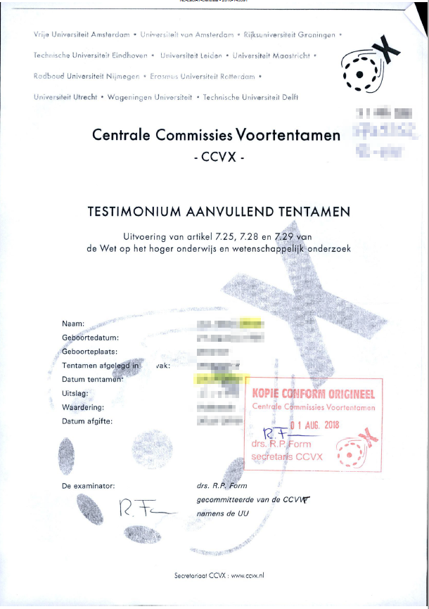 If you do not have the required grade, subject, or subject level, you might be eligible to do an additional test(s) if your overall level is equivalent to the Dutch VWO-Level. The University of Twente only accepts certificates from CCVX, James Boswell-Bèta (both online and physical tests from James Boswell-Bèta are accepted, contact them about the online possibilities), or the Dutch 'Staatsexamen'. The OMPT and Korteweg-de Vries tests are not accepted by the University of Twente.