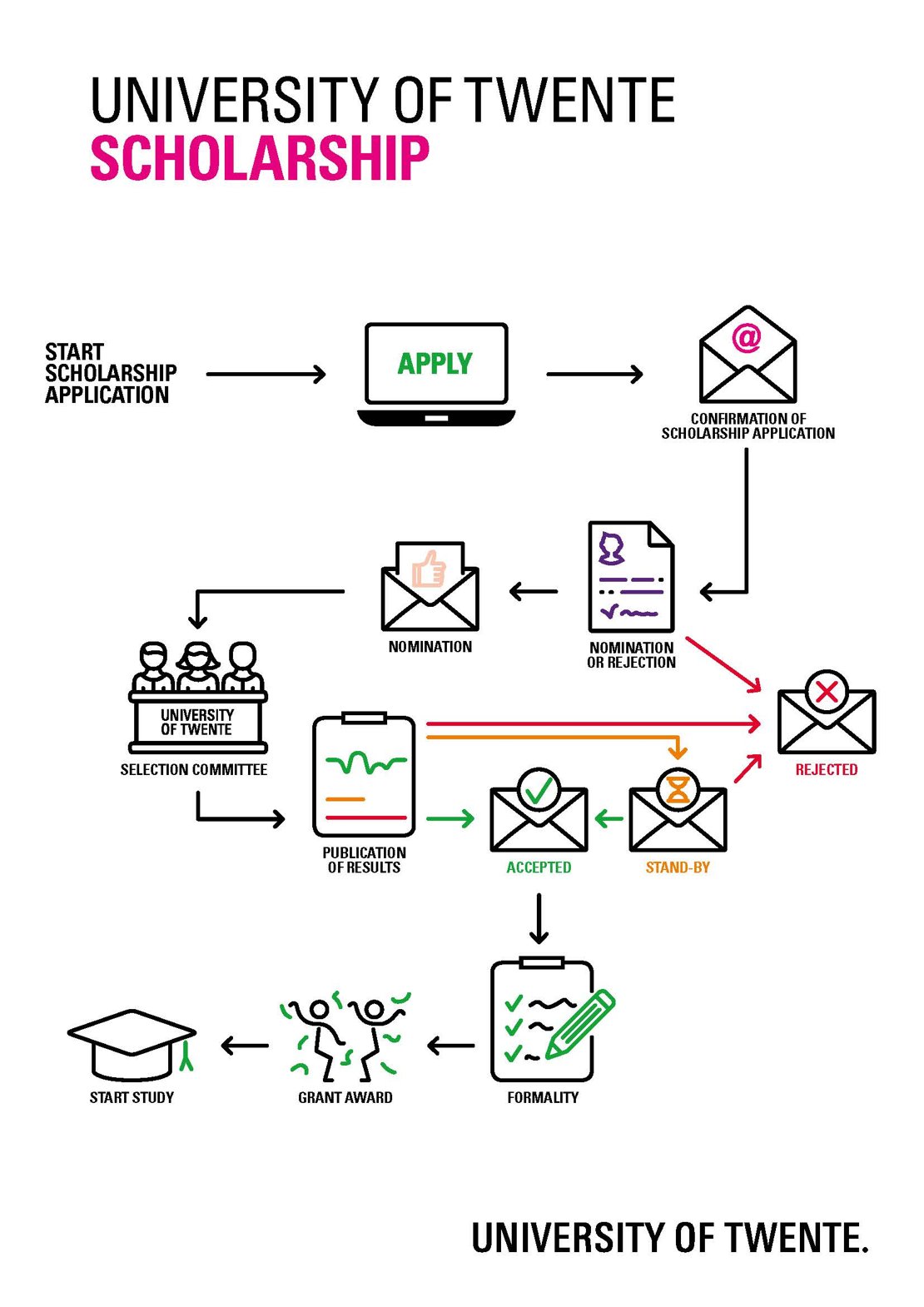 - Application for an UT scholarship is a procedure separate from the application for course entry at the University of Twente. Regardless of funding, you will need to gain an accademic admission letter first.