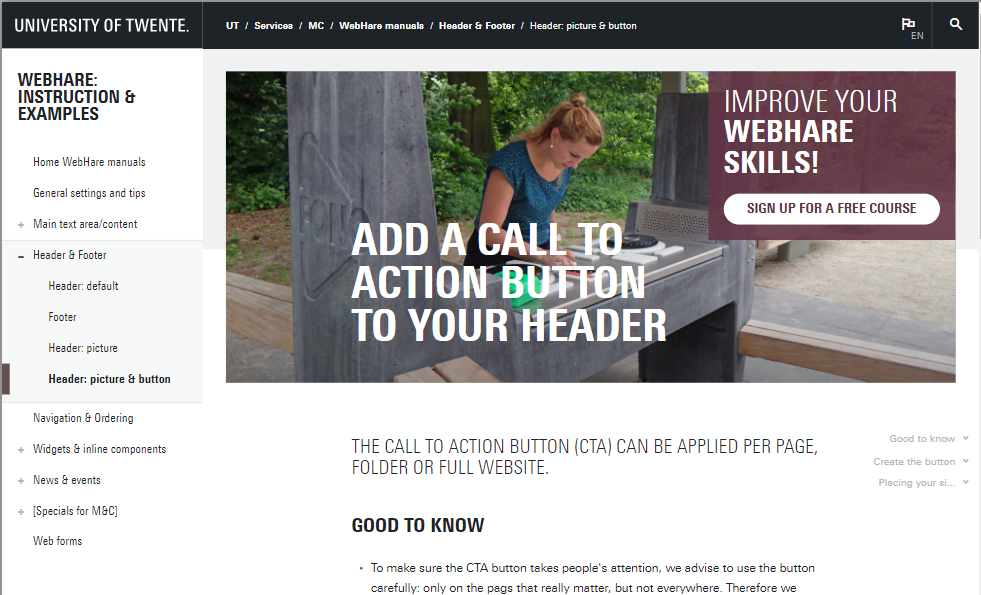 The course focuses on the UT template shown below. ITC, institute en non-branding template users can also join. Users of the Student Union template can also attend, but should realize that 30% of the course content is not relevant to them.