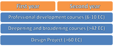 The block with in-depth and broadening courses can partly be tailored to the technological design project. Gained skills in professional development and gained knowledge from in-depth and broadening courses are employed in the design project. During the design project, you transfer results into technological innovation in industry or society.
