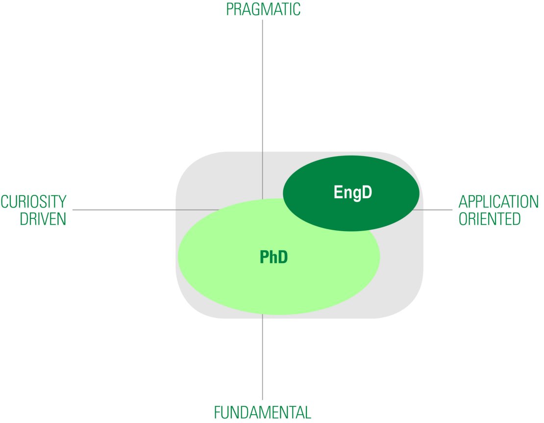 EngD is a practical-oriented professional doctorate in engineering which is better suited to the direct needs of industry, whereas a PhD track focuses on scientific research. The three most noticeable differences between a PhD and an EngD programme are: