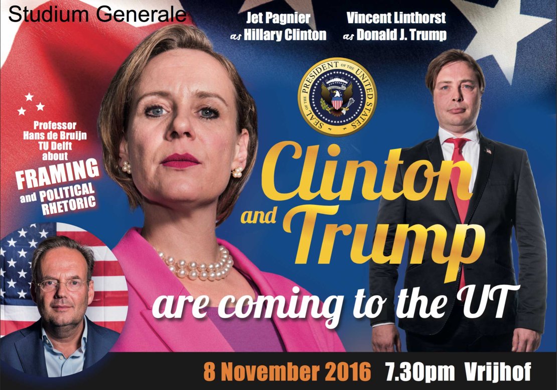 During the American presidential election a lot of mudslinging is going on. The meanest strategies are launched to eliminate the opponent. Donald Trump appears to be a master in framing; by using smart and very bold one-liners he manages to convince his audience. Which frames will Hillary Clinton use? At this Election Day Hans de Bruijn will expose rhetorical tricks of both candidates.