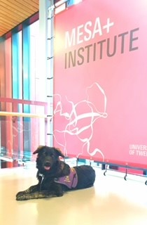 Ulfie will accompany me to the university now and then, so you will probably run into us occasionally. No worries, Ulfie is a sweet dog, and you don’t have to do anything with her. The best thing you can do is ignore her completely, especially when she is wearing her purple coat, as you can see in the photo. Then, she is ‘working’.