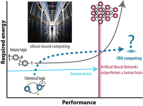 In our search for more powerful and, at the same time, less energy-consuming computing systems, scientists work on several alternatieves. Of the living cell, we actually don’t know much about how it does its calculations. Or, even a step back: what is computing, calculating in nature? Can molecules – the elementary building blocks of life – actually do something we call calculating? These are questions for which the answers are only in the beginning. In their new publication in ‘Small’, Albert Wong and his colleagues demonstrate that, based on a simple system of three enzymes, already a system can be realized that has properties that our brain has as well. Wong therefore sees opportunities for using these ‘chemical reaction networks’ (CRN’s) as a basis for neural networks.