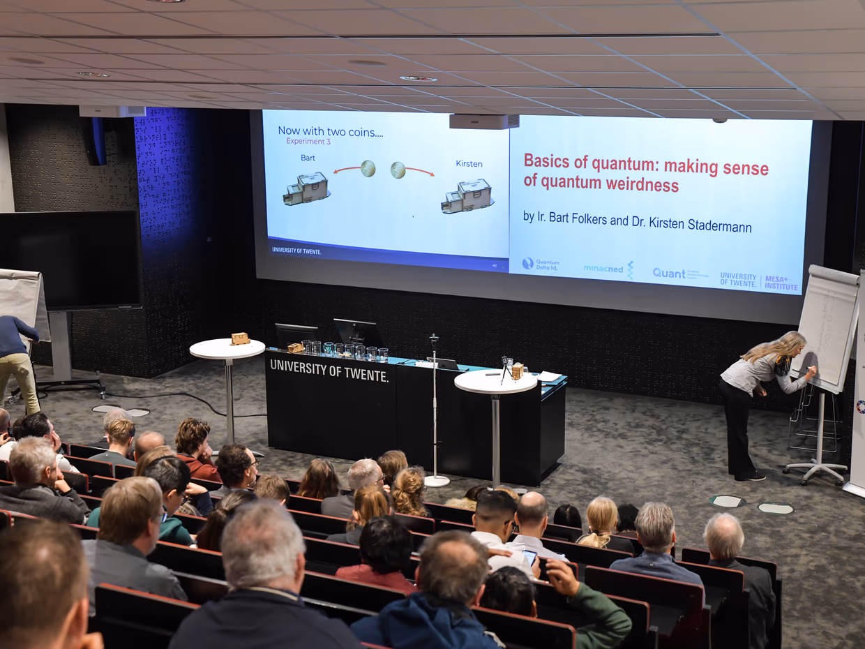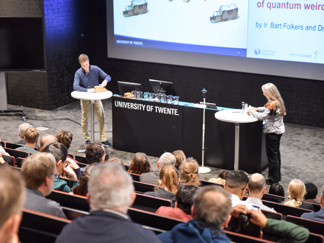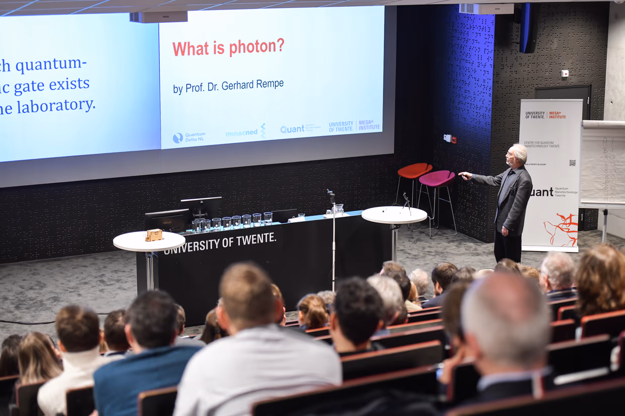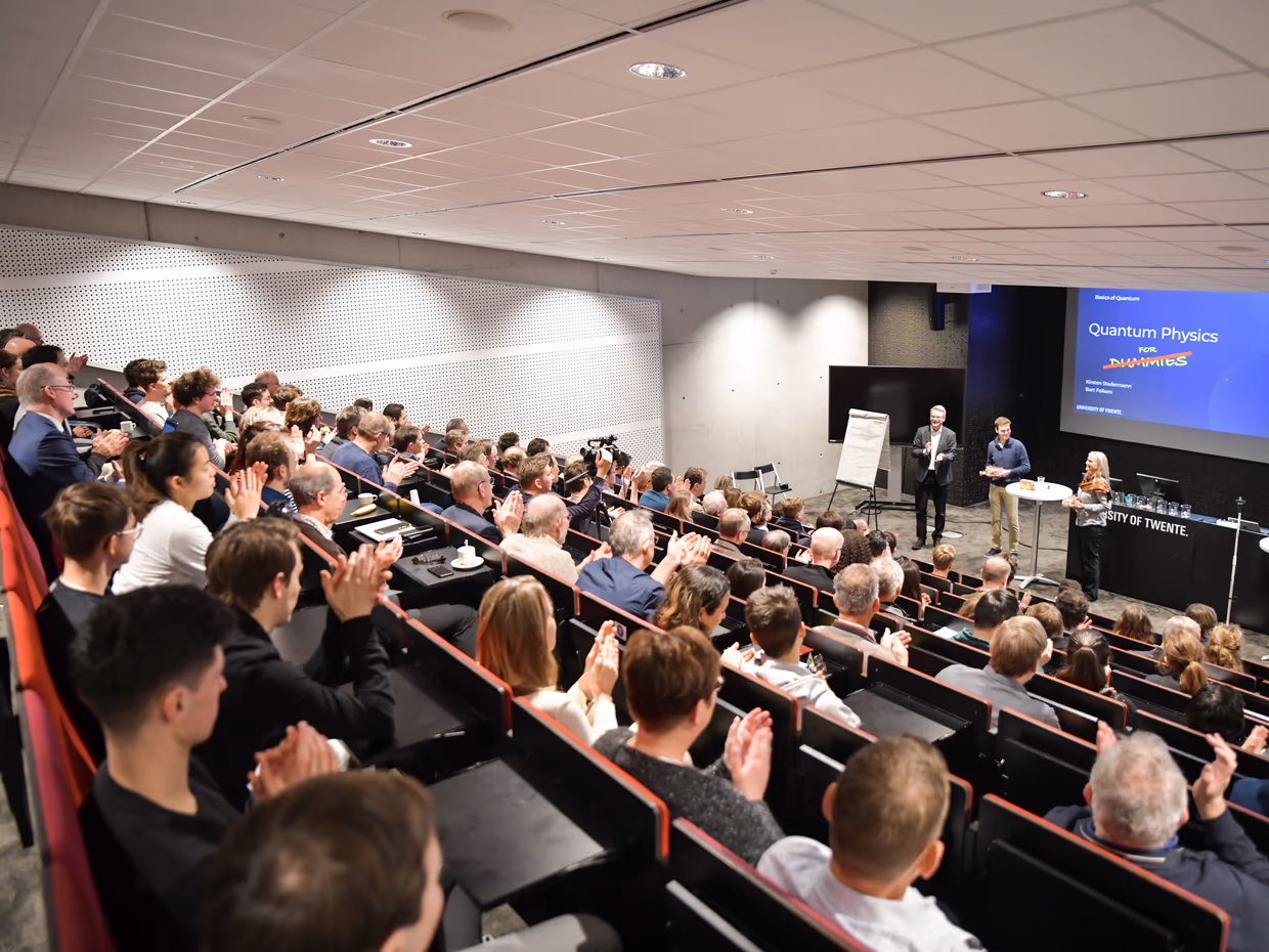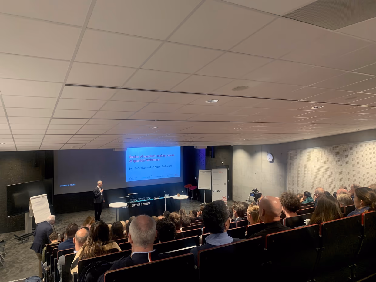 Yesterday, in the run-up to Pepijn Pinkse’s inauguration about quantum light, the Quant Centre and MESA+ organized the symposium Quantum for Dummies. We are looking back at a successful edition with about 140 participants from various backgrounds: companies, scientists from other disciplines, students, colleagues and government.
