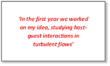 ‘I came up with an idea in the first year of my PhD project. We worked on it, studying host-guest interactions in turbulent flows. Jurriaan Huskens gave me the opportunity to follow this specific line of research, which led to a good publication in the Journal of Materials Chemistry B. This gave me motivation and self-confidence to continue.’
