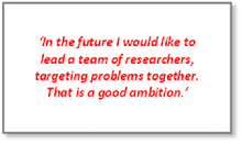 ‘During the PhD project I loved working with PhD students, leading them in the projects we started. Also I learned to work on multiple projects simultaneously. After two years here, I already worked on four projects in which more than five students and several other colleagues were involved. From these experiences I developed myself toward an independent researcher, used to work in multidisciplinary environments.’