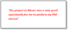 After completing his master as a pharmaceutical chemist, Roberto grasped the opportunity to go and work within the Mesa+ institution. ‘At that time I had a strong desire to perform my PhD abroad, in a different kind of research field, developing new skills. The position at Mesa+ was a very good opportunity to do so, and it certainly did meet my expectations. I was especially impressed by the facilities present here, together with the technical support I got.’