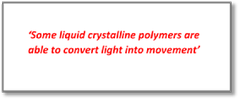 ‘A second aspect involved chirality on different length scales that occur in a special type of liquid crystals,’ Sarah Jane says. ‘Some liquid crystalline polymers are able to convert light into movement. We managed to design a initially achiral flat structure that opens up in two helically shaped halves under the influence of a UV-light signal. Some of our other materials contain chiral molecules, or form chiral supramolecular structures that can be observed under the microscope.’
