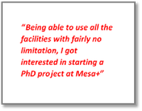 ‘Being able to use all the facilities with fairly no limitation, I got interested in starting a PhD project at Mesa+,’ he says. ‘I now love to study physics; especially statistical and biophysics I find fascinating and extremely interesting. I prefer a career in academics. I now know better where the “blanks” and main scientific questions are still left open. If give the chance, I would love to continue working on these first. I also have great interests in biophysics. Someday, I would like to work in that area.’