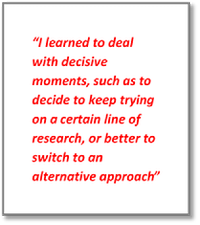 ‘The meetings with Pascal were always inspiring. I learned to deal with decisive moments, such as to decide to keep trying on a certain line of research, or better to switch to an alternative approach. After the first year for example - less successfully synthesizing on one molecule - we decided to switch to another one, starting the whole process all over again. This proved to be a good choice eventually, in which we reached some nice results.’