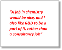 ‘In academics the results are hidden in the future,’ she says. ‘A job in chemistry would be nice, and I also like R&D to be a part of it, rather than a consultancy job.’