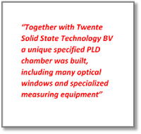 Building the experimental setup took a vast part of his PhD-project period. ‘The spectral width and narrow dimensions of the LIF laser beam must be absolutely accurate,’ Kasper says. ‘Together with Twente Solid State Technology BV a unique specified PLD chamber was built, including many optical windows and specialized measuring equipment. Now the chamber is situated at the IMS group. All kinds of enhanced measurements can be performed, visualising all materials present in plasmas, because of the 200-1000 nm spectral range of the spectroscopic setup.’