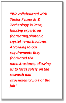 ‘They are experts in fabricating photonic crystal nanostructures,’ Sergei explains. ‘According to our requirements they fabricated the nanostructures, allowing us to focus solely on the research and experimental part of the job.’