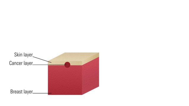 Scientists at the University of Twente working on the properties of human tissue wanted to know whether indeed it was possible for a tumour to be responsible for the colour of the breast. They simulated millions of photons (‘light particles’) with different wavelengths, which were fired onto a breast with a tumour. They then looked at how many photons came back, and what colour the human brain would assign to the returning light.