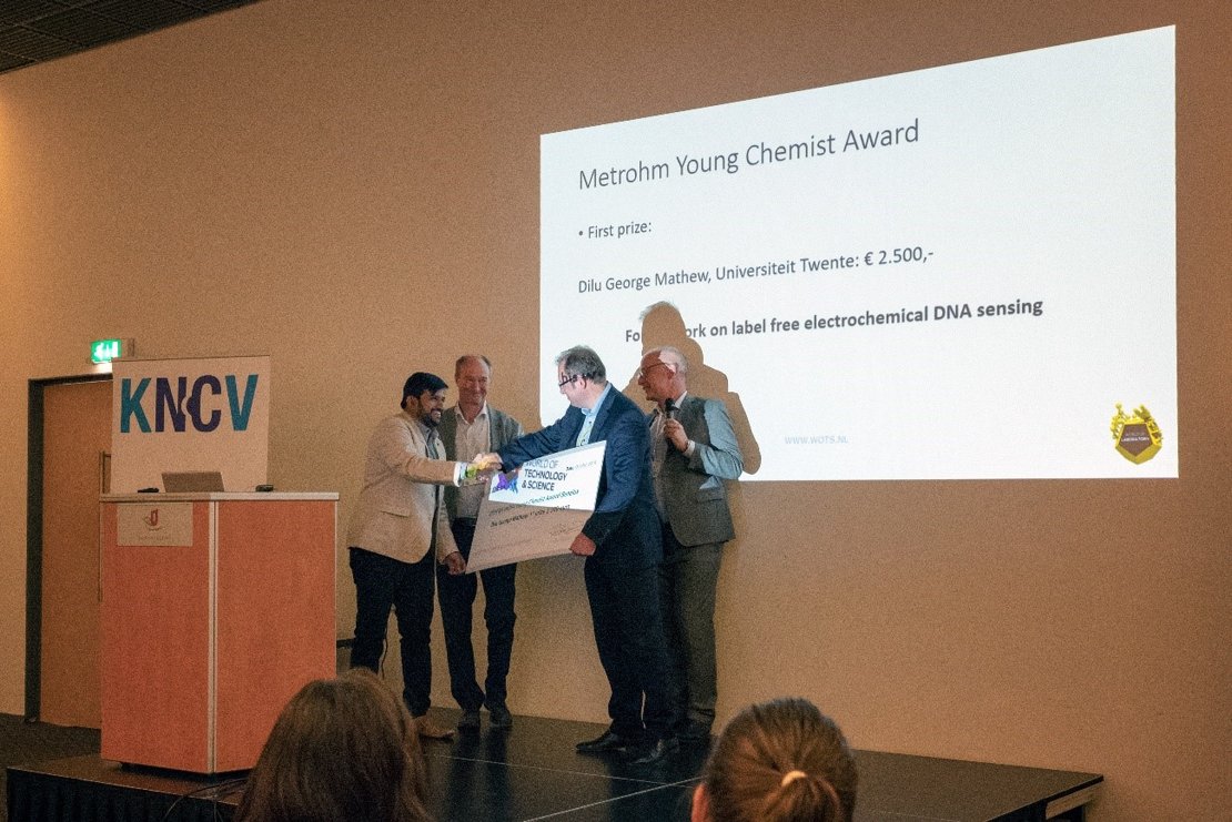 NanoElectronics group member, Dilu Mathew, won the 2018 Metrohm Young Chemist Award for the Benelux region in recognition of his novel research on "highly selective and sensitive detection of DNA for cancer diagnostic applications". Metrohm is a Swiss company started in 1943. As a part of their 75 year jubilee, Metrohm has conducted the Young Chemist Award globally for different regions/countries including the Benelux to honour the spirit of innovation and its potential to shape the world.
