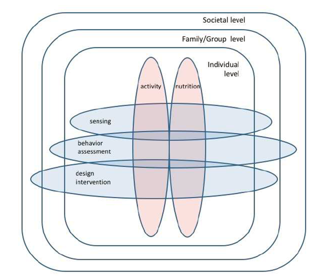 - How can sensor data, gathered at different levels in a system (at the individual, in the household, in an environment), be combined to design more effective lifestyle interventions?