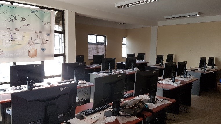 Prior to delivery, the GIT equipment was pre-configured and tested at ITC (Figure 1a). The equipment is now installed at the three local partner universities (Figure 1b).