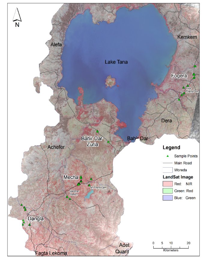 The study and data collection is conducted in Lake Tana sub-basin, Ethiopia for maize, rice and teff crops.