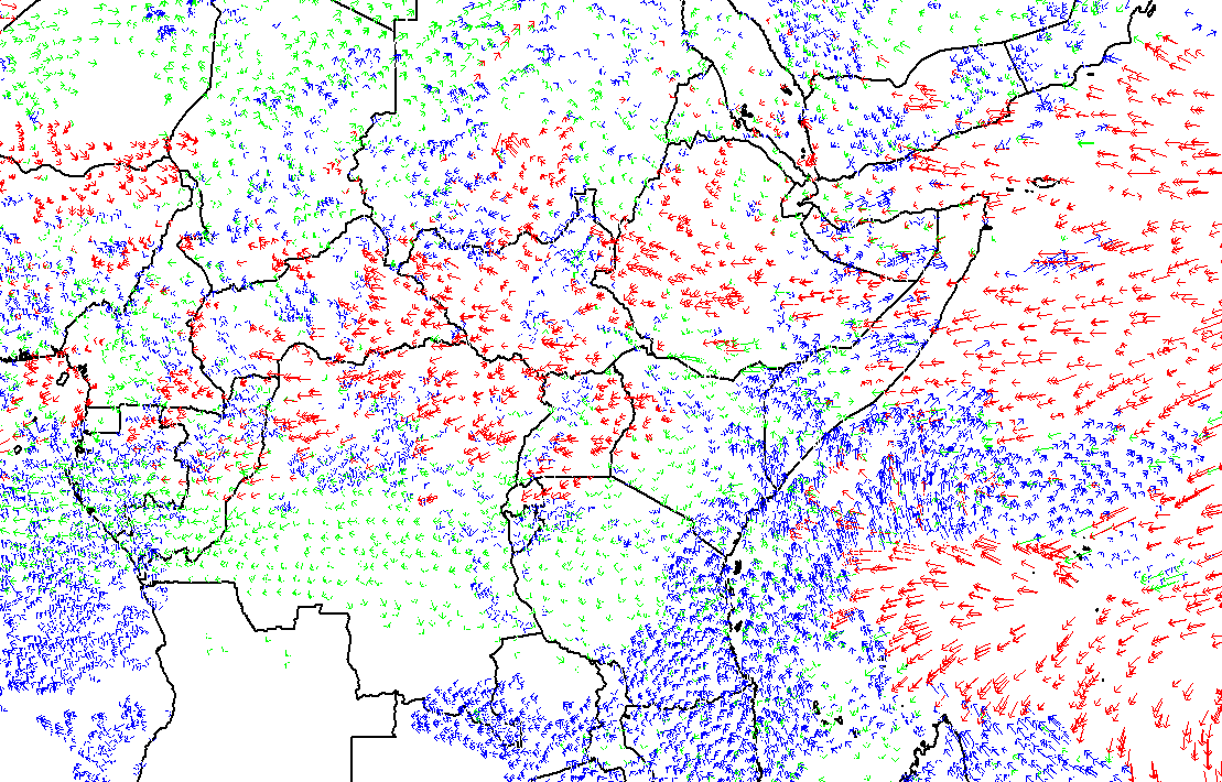 Figure 2: Wind vector map processed from data obtained using the satellite reception system at Mekelle University