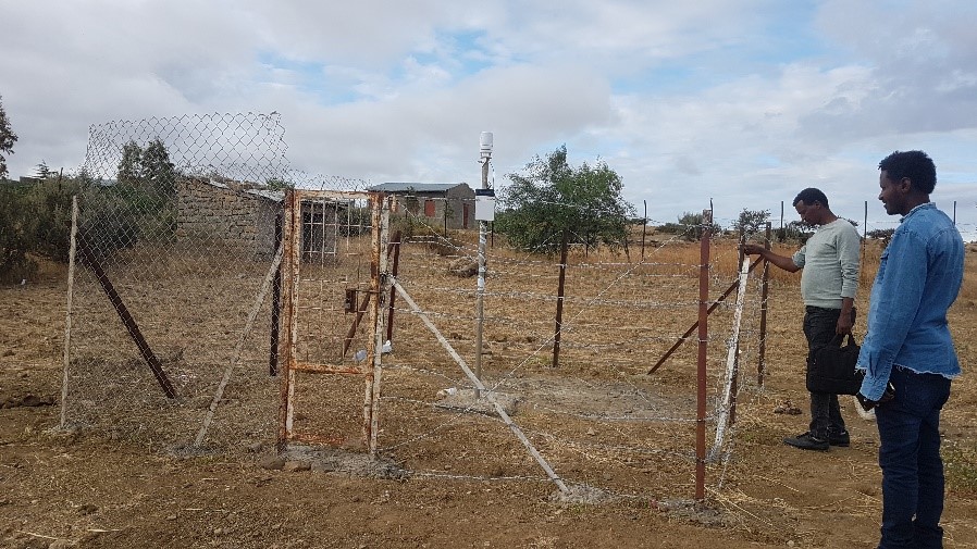 In order to support the research of the PhD students, 4 automatic weather stations with 12 parameters, and one automatic weather station with 4 parameters is installed across Zamra catchment. The type of automatic weather station installed at Zamra is Atmos-41 sensor (Figure 3). In order to protect from vandalism, 4 of the automatic weather stations with 11 channels are installed in the periphery of local Farmers’ Training Center (FTC) or at health posts and all are fenced with mesh wire to protect from vandalism. One of the automatic weather station with 4 channels is installed at a periphery of farmer’s plot. The weather stations with 12 parameters have soil moisture sensors that can record soil moisture profiles at 4 depths. Tigray National Meteorological Office supported the installation of these equipment.
