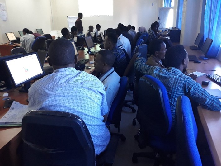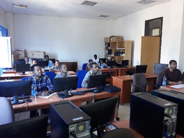As part of the outreach program, Geographic Information System (GIS) and remote sensing training was provided to 23 Development Agents (DAs). The core of the training was the application of geo-information and earth observation techniques in support of natural resources management (NRM). The training provided participants with knowledge and skills needed for the collection, interpretation, and management of spatial information, using remote sensing and geographic information systems, to support planning and decision-making processes in natural resources management. The training concentrated on methods for assessing the state of the resource base and the changes that occur and progresses to the assessment of impacts and societal response.