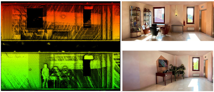 The system consists of three 2D light detection and ranging (LIDAR) scanners and an inertial measurement unit (IMU). The LIDAR scanners provide laser points. “They record points on the surrounding walls, ceiling and floor,” explains Karam. The IMU measures the accelerations and angular velocities of the backpack over time. This data is used to estimate the pose changes. As global navigation satellite systems (GNSSs) don’t work inside buildings, the ITC-backpack employs a simultaneous localization and mapping (SLAM) algorithm developed during the research trajectory of Karam. “It is LIDAR-IMU-based SLAM that relies on planar structures in the indoor built environments,” he explains.