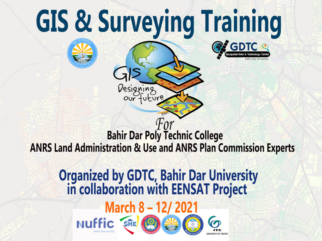 Geospatial Data & Technology Center (GDTC) of Bahir Dar University in collaboration with Ethiopian Educational Network to Support Agricultural Transformation (EENSAT) project offered a five days long hands-on training on GIS & Surveying for GIS & Surveying professionals & experts from Bahir Dar Poly Technic College, ANRS Land Administration & Use, and ANRS Plan Commission.