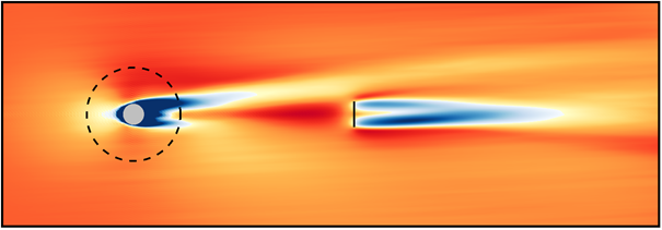 Figure 1. One of Liu’s simulations, showing high turbulence immediately behind the hill. Visualisation by Dr Srinidhi Gadde.