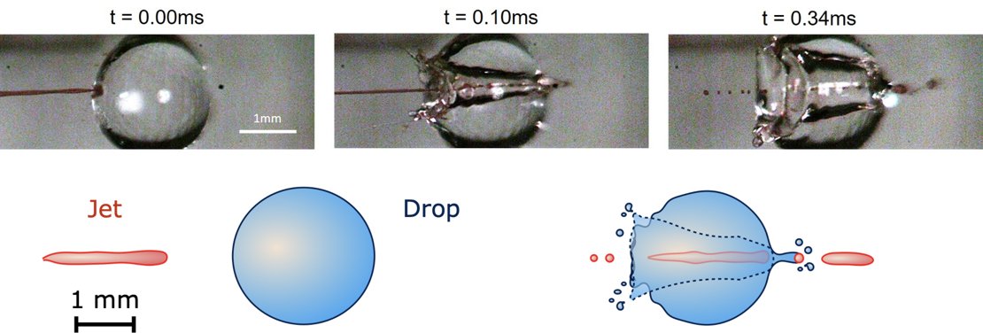 A fast liquid jet, fired at a liquid drop, shows great effects. But how fast should this jet be, for penetrating straight through the droplet, just like in the legendary experiments with a bullet, shot through an apple? What is the effect of the specific liquid that is shot at? The team of David Fernandez Rivas at the University of Twente did model predictions and experiments on this. This provides valuable information for the development of needle-free injection technology. The research is in the Soft Matter journal.