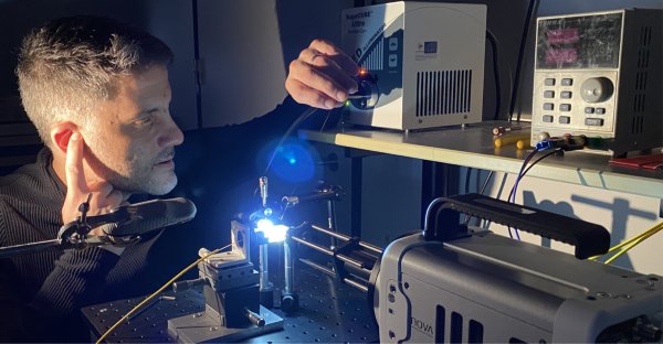 ‘Making apple sauce at MIT’, researcher Harold ‘Doc’ Edgerton called it. He shot a bullet at an apple, this went through at 500 m/s. What was very special is that he, already in 1964, could capture the effect, using stroboscopic flash techniques. But as an apple is opaque, you can’t see what is happening inside. This is what UT researcher David Fernandez Rivas, who also spent some time at the Edgerton Center at MIT, is curious about. He replaced the apple by a liquid droplet hanging on a ‘straw’. And he didn’t fire a bullet but a liquid jet. This is less fast, but both experiments are strikingly similar. In the end, David would like to find out how a liquid jet effectively penetrates human skin, how far it will reach. And thus: what is the best speed?