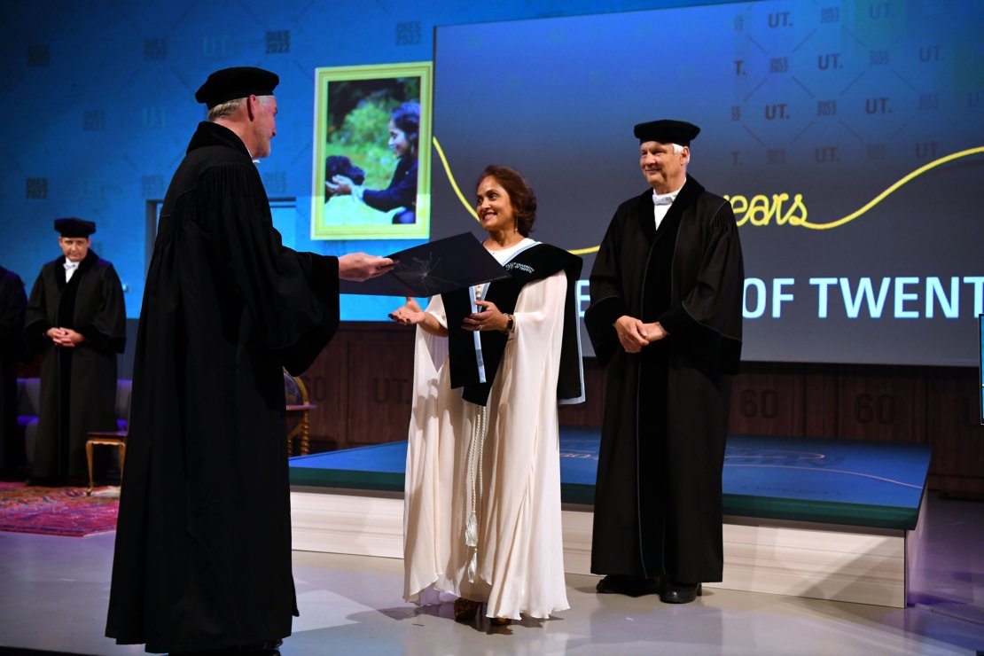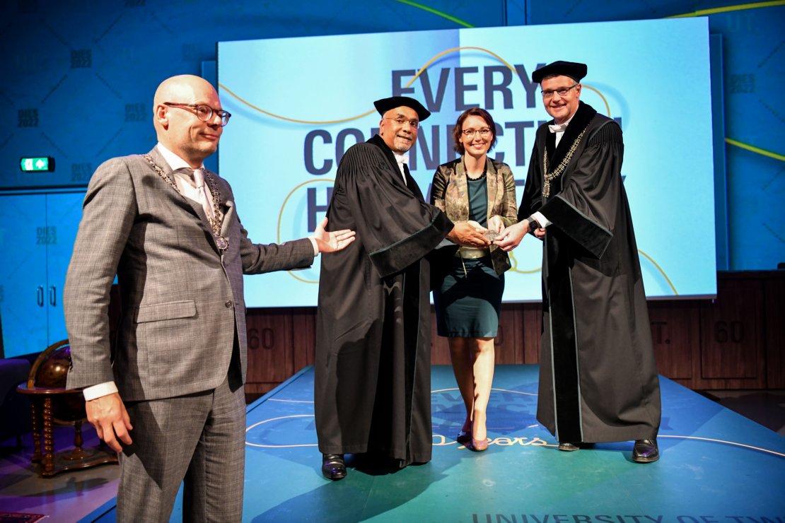 Every five years, the University of Twente awards honorary doctorates to people who have made an outstanding contribution to science and society. During the twelfth anniversary, the honorary doctorates go to people who have dedicated themselves to a fair, sustainable and digital society and to entrepreneurship. Honorary doctorates are entitled to use the title Doctor honoris causa, or Dr.h.c. The UT considers them to be important ambassadors.