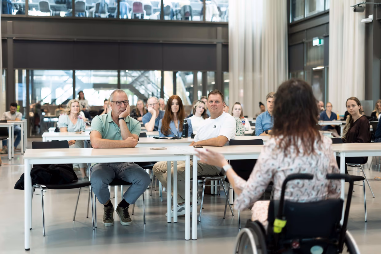 Was it then, lastly, all doom and gloom when it comes to accessibility? Absolutely not. Jiska inspired everyone in the room with inspiring examples of how it can be done differently. Clear communication plays a key role in this. A sign indicating how to bypass a blockage or a broken elevator with a wheelchair or stroller, an extra parking spot designated for parking handbikes, tricycles or mobility scooters, or a clear instruction on how to use support bars in an accessible restroom. These examples show how simple – and enjoyable – it can be to work towards greater inclusion. By starting from the premise that everyone is different and equitable. And from there, figuring out what is comfortable for everyone, regardless of whether someone has a disability, wears glasses, or had a restless night. Engage in conversations with each other, listen actively and find out how you can support one another.