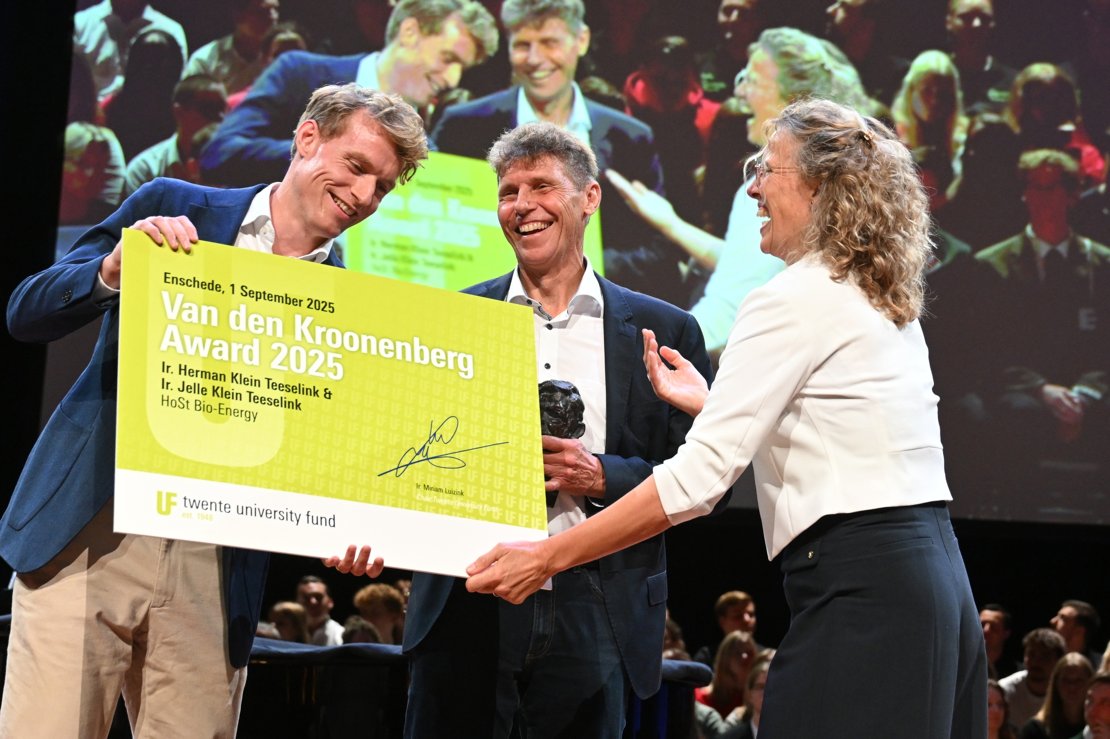 During the opening of the academic year, the University Fund Twente its annual Van Den Kroonenberg Award to UT alumni Herman and Jelle Klein Teeselink of HoSt Bio-Energy. Herman founded the company, while his son Jelle has been part of the management team since 2020 and now continues the family business as CEO. The award is presented each year to entrepreneurs with a UT background who have successfully brought a start-up to market.
