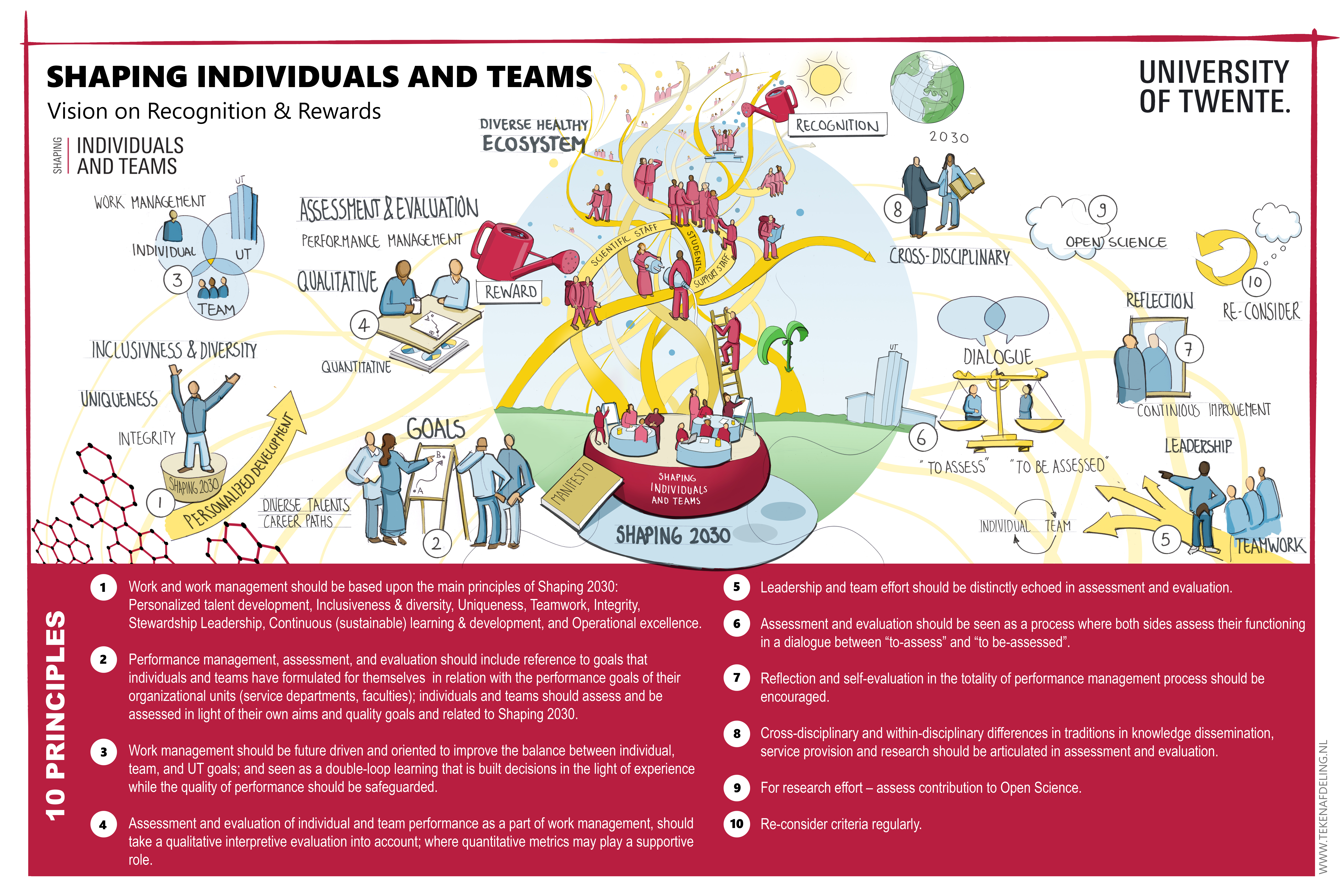 Motivated by the principles and ambitions of Shaping 2030, we support the University of Twente in developing its people-first strategy through continuous dialogue in flourishing inclusion and diversity in education, research, valorization, and leadership, on the road towards Open Science. We strive to create cohesion between ongoing projects and take advantage of our organizational flexibility, teamwork, and integral approach towards academic and support staff.