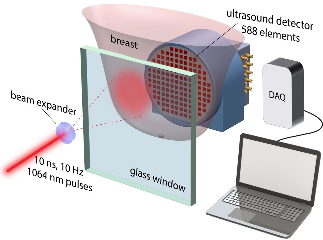 Photoacoustic mammography is a novel diagnostic modality, pioneered by the chairs of prof. Steenbergen (BMPI) and prof. Manohar (M3I). These facilities consist of experimental biomedical photonic research labs in de Zuidhorst building and pre-clinical photoacoustic labs in the Technohal. After its successful initial clinical studies in the MST Oldenzaal hospital, the Twente Photoacoustic Mammoscope (PAM 2) will soon reside in the Imaging Lab, where experimental studies using human subjects can be performed in a safe, patient-friendly and controlled environment.
