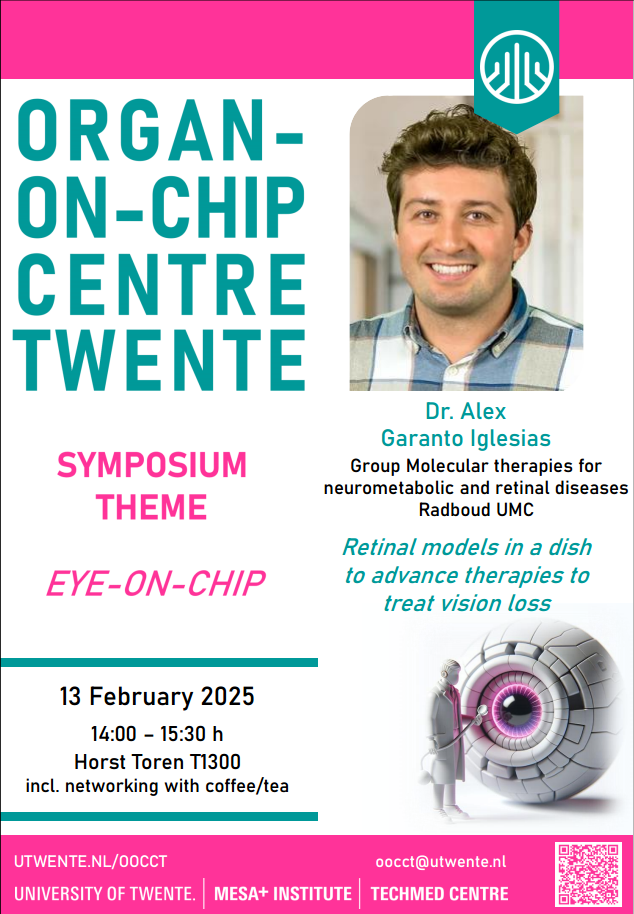 Op 13 februari 2025 organiseert het Organ-on-Chip Centre Twente een nieuw symposium met het thema Oog-op-Chip (Eye-on-Chip).