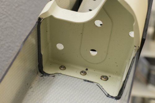 Voorbeeld van een vliegtuigonderdeel van thermoplastisch composiet met metalen elementen die mechanisch bevestigd zijn, op de oude manier.