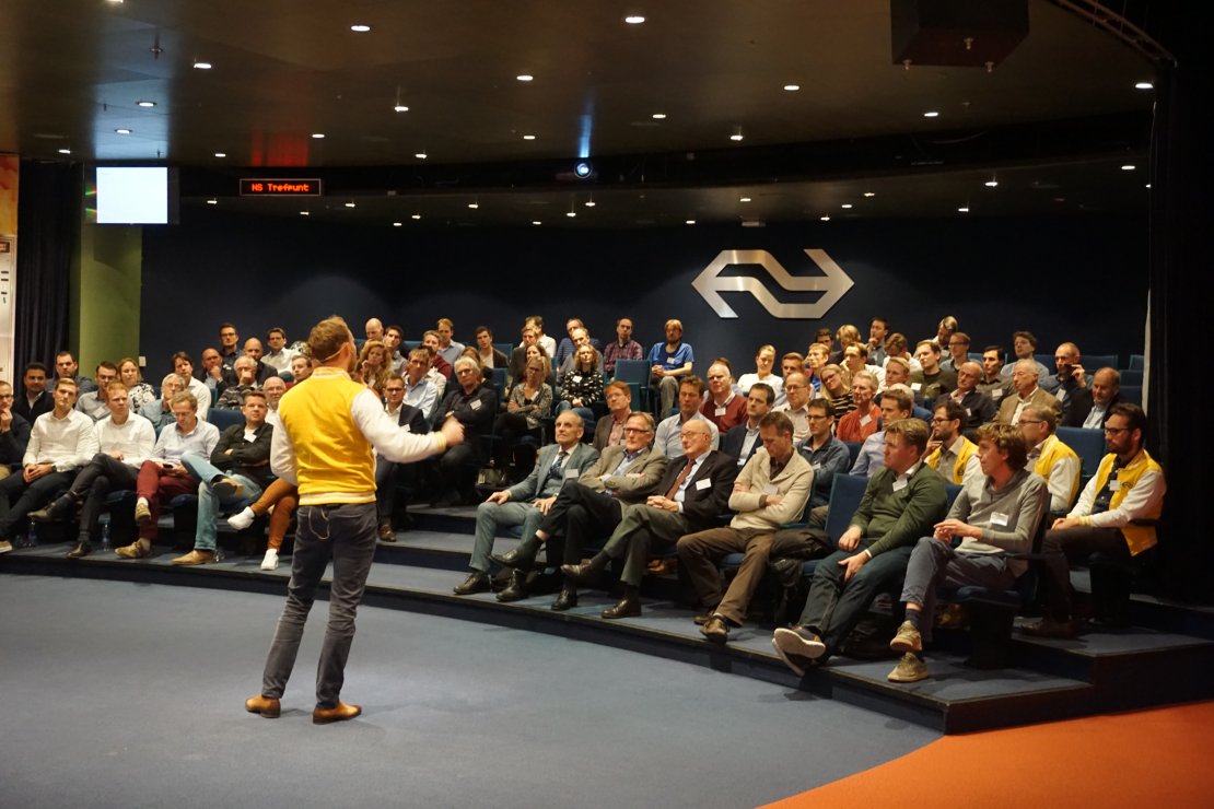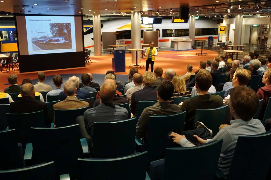 In navolging van vorig jaar, waarin de Alumnikring Utrecht al twee succesvolle evenementen rondom het thema ‘Trainspotting’ organiseerde, bezochten de Utrechtse UT-alumni deze maand het hoofdkantoor van de NS. Met meer dan 110 UT alumni werkzaam bij de Nationale Spoorwegen, was een bezoek aan het bedrijf zeker de moeite waard. Ruim 100 alumni werden tijdens een goed georganiseerde avond ondergedompeld in de wereld van NS: wat komt er kijken bij de keuze voor een nieuwe trein of moderniseren en tegen welke uitdagingen loopt de NS aan in het onderhoud en het regelen van de logistiek?