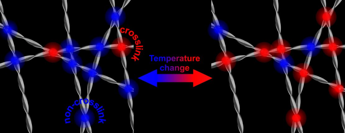 Bij hogere temperaturen leggen de vezels meer verbindingen, waardoor het netwerk stijver en sterker wordt. Dit is omkeerbaar: verlaging van de temperatuur resulteert weer in een minder stijf netwerk - door minder contactpunten.