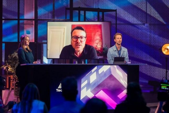 Presentator Marcel Bamberg en Aanjager van Technologie Merel Oldenburg in gesprek met Constantijn van Oranje. Foto: Floris Heuer