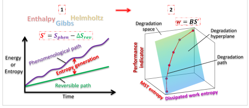 Met eerste beginselen als uitgangspunt hebben Jude Osara en Michael Bryant onlangs een benadering ontwikkeld die is gebaseerd op de tweede wet van de thermodynamica, die de auteurs hebben geherformuleerd als het PEG-theorema (Phenomenological Entropy Generation). Dit theorema definieert als referentie een pad van nulveroudering (dat de limiet aangeeft waarbij een systeem alleen maar bestaat) en een verouderingspad, waarlangs alle daadwerkelijk bestaande systemen zich moeten ontwikkelen wanneer zij actief of in gebruik zijn. In combinatie met het DEG-theorema (Degradation Entropy Generation) wordt vervolgens een door de gebruiker gekozen prestatie-indicator (d.w.z. een willekeurige systeemparameter die door een sensor kan worden gemeten) direct gecorreleerd met de fysica van de actieve procesmechanismen.